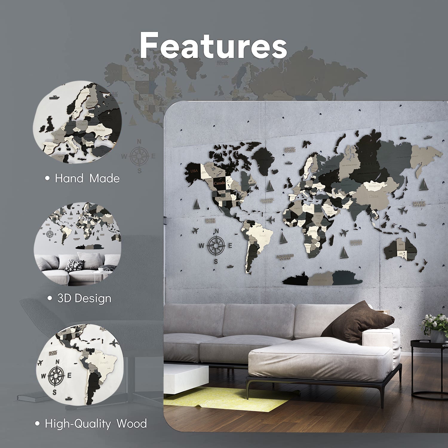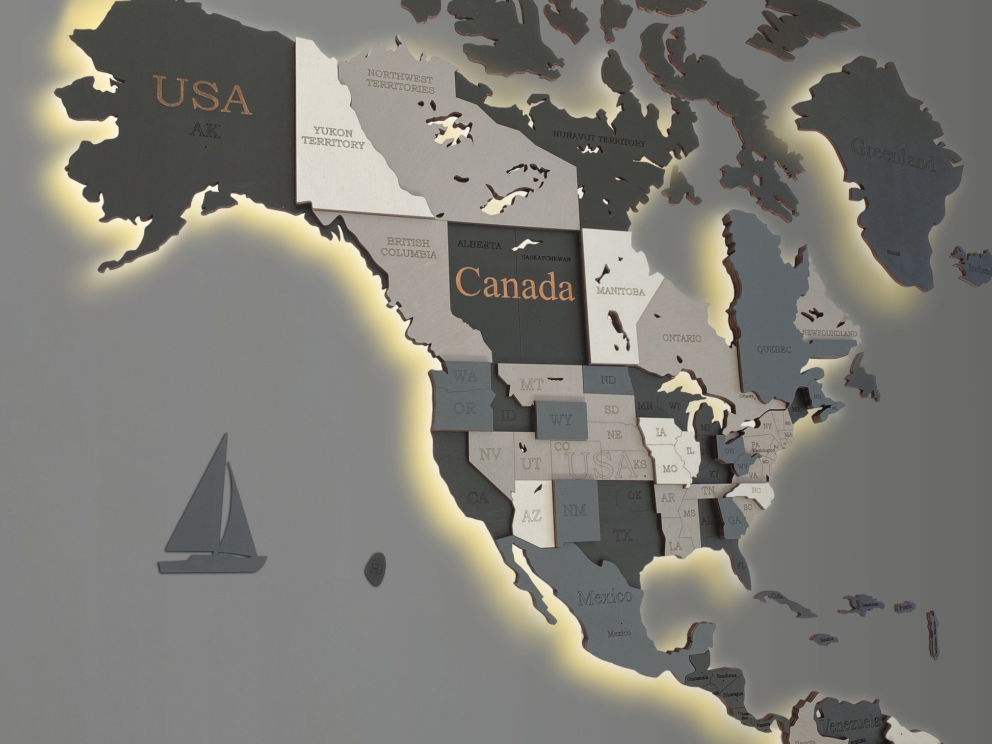 Notre carte du monde en bois est faite avec une grande attention à chaque détail. Nous n'utilisons que des matériaux naturels, tels que le contreplaqué de bouleau et les peintures écologiques. Si vous avez des murs libres, cette carte est la meilleure chose à faire. Le ruban lumineux LED est collé autour des principaux continents. Nous ajoutons une télécommande pour sélectionner les modes et la luminosité du rétroéclairage. Vous pouvez choisir la taille, le type, la couleur du rétroéclairage (lumière chaude ou froide) et le mode de connexion (depuis la prise, depuis le fil derrière la carte ou connexion individuelle).